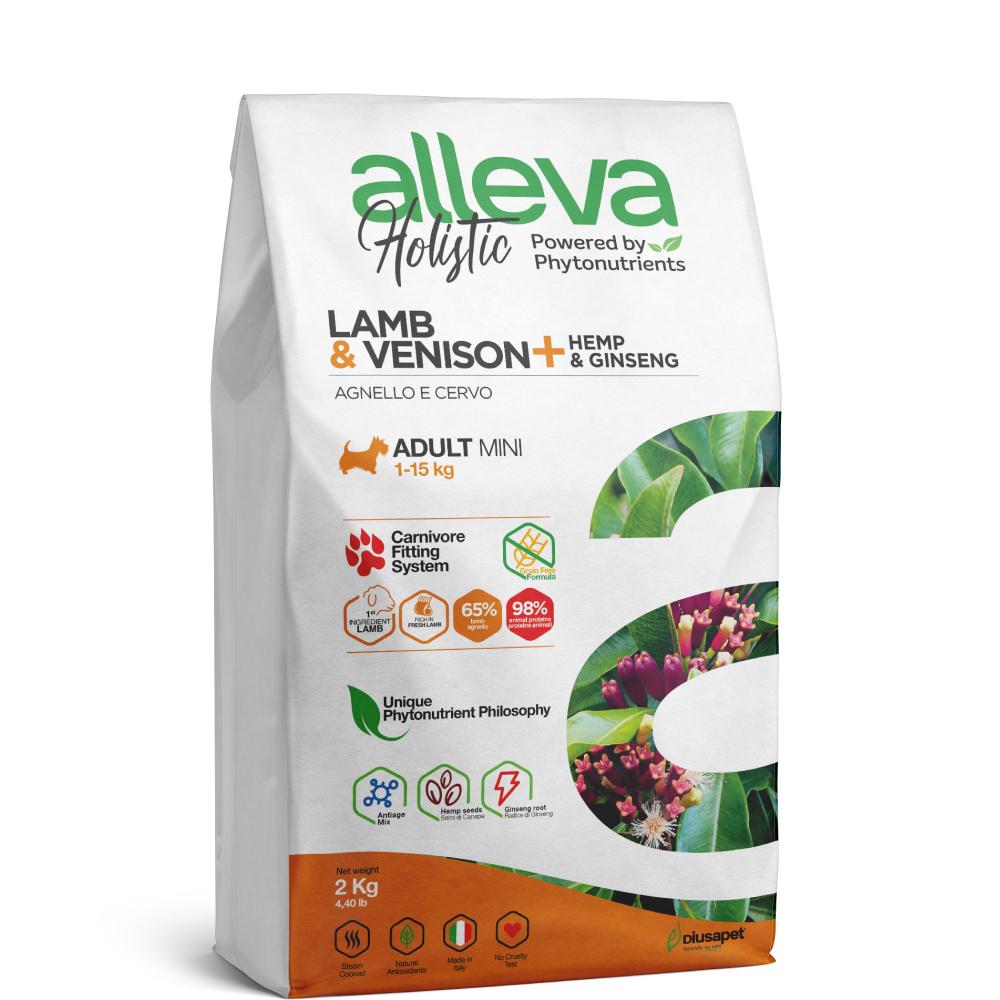 53 749 ₽ALLEVA Holistic Сухой корм для собак мелких пород, с ягненком и олениной, коноплей и женьшенем, 2 кг