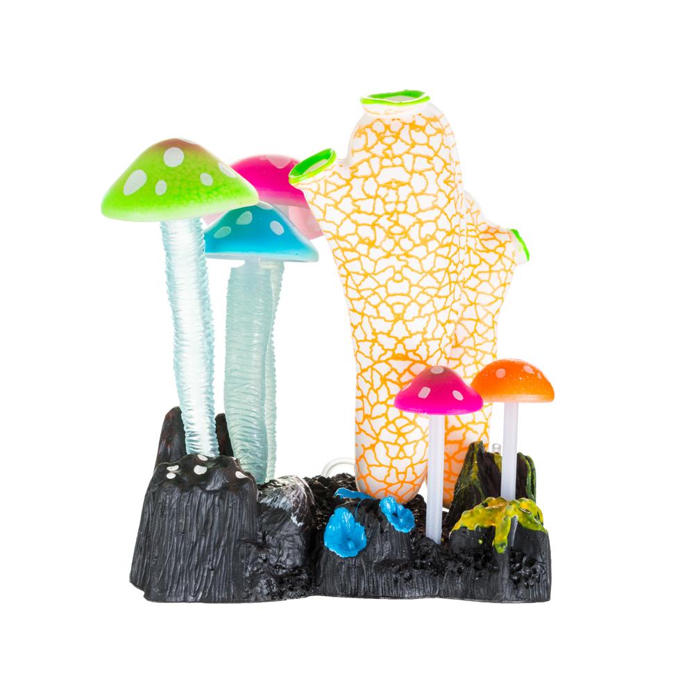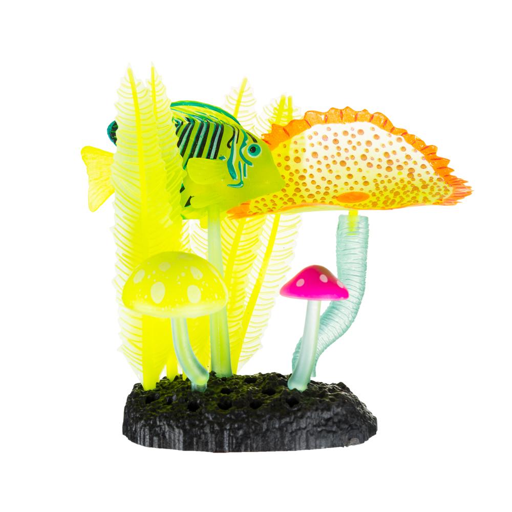 Декоративные элементы не только имитируют внешний вид водных обитателей, но и еще светятся в темноте. Это интересный вариант для оформления аквариумов с подсветкой или специальным ночным освещением.
