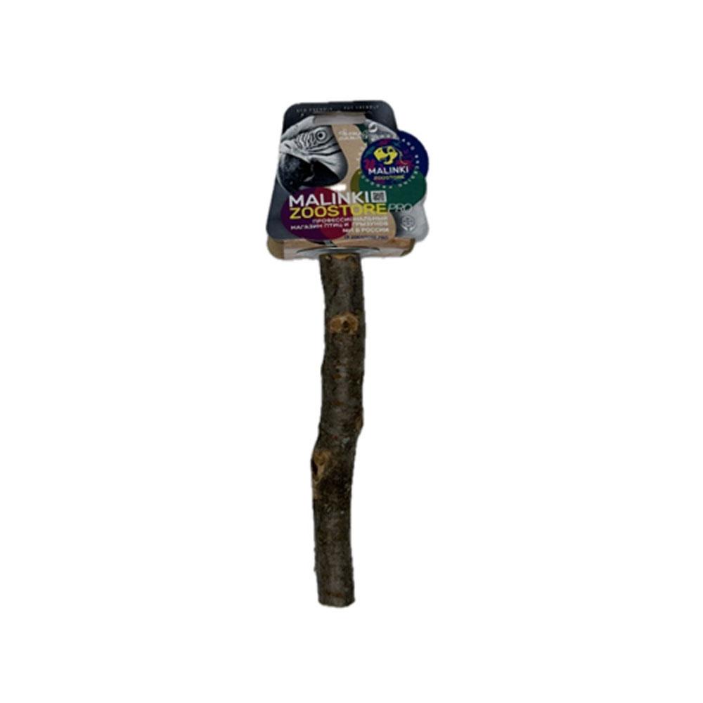 Malinki ZooStore Игрушка деревянная для птиц Жердочка с корой, 20 см