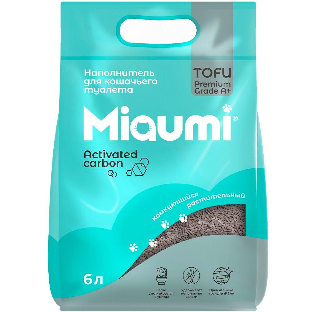 4.9949 ₽MIAUMI Наполнитель комкующийся растительный с активированным углем для кошачьего туалета, 6 л, без аромата