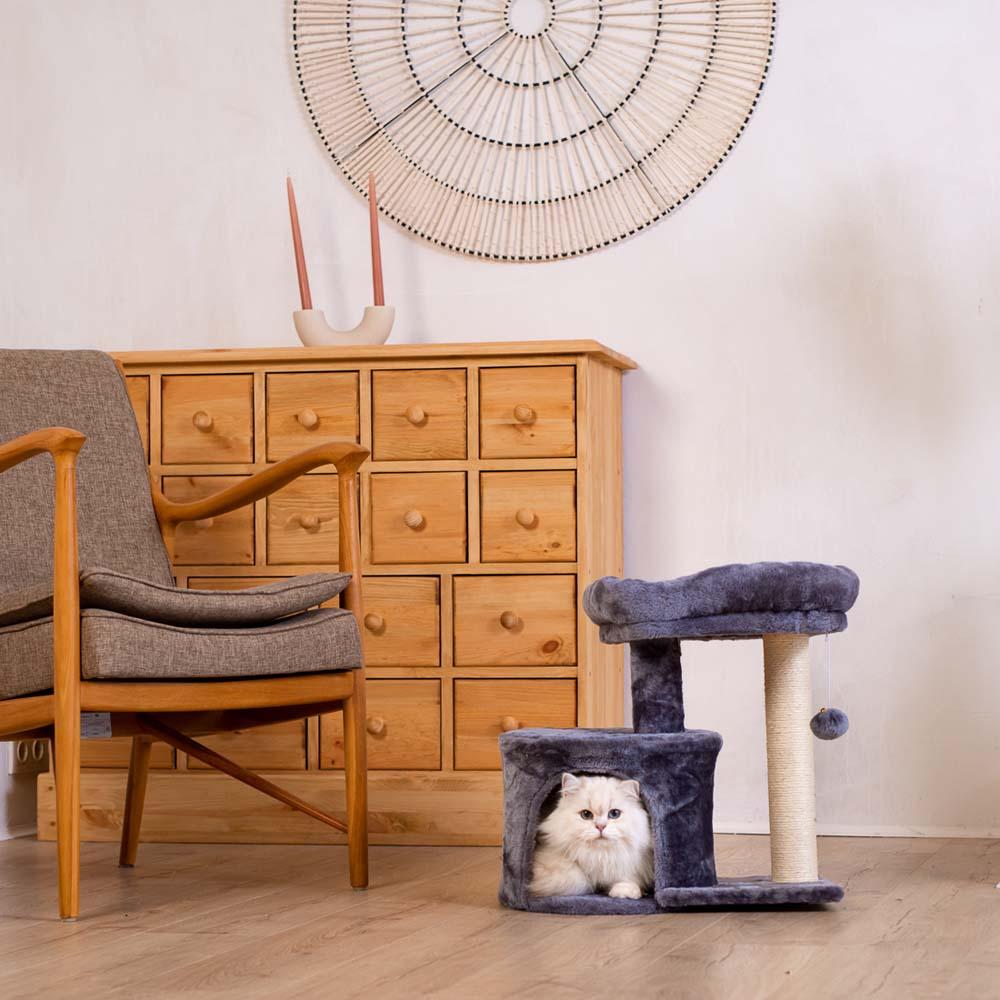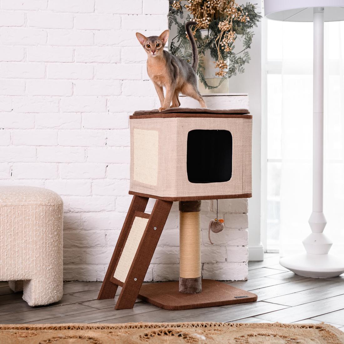Домик с когтеточкой — отличный вариант для вашего пушистого друга. Во-первых, кошка получит инструмент для точения когтей. Во-вторых, в уютном, теплом домике можно организовать место для сна или послеобеденного отдыха, а еще спрятаться от окружающих.