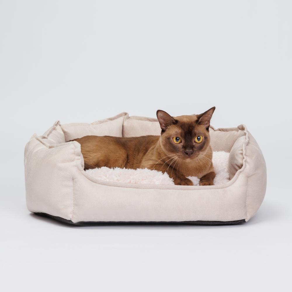 2. Форма. Спальные места бывают квадратными, прямоугольными, круглыми и даже в виде домиков. Особенно представители кошачьего семейства любят круглую форму, напоминающую корзинку или гнездо.