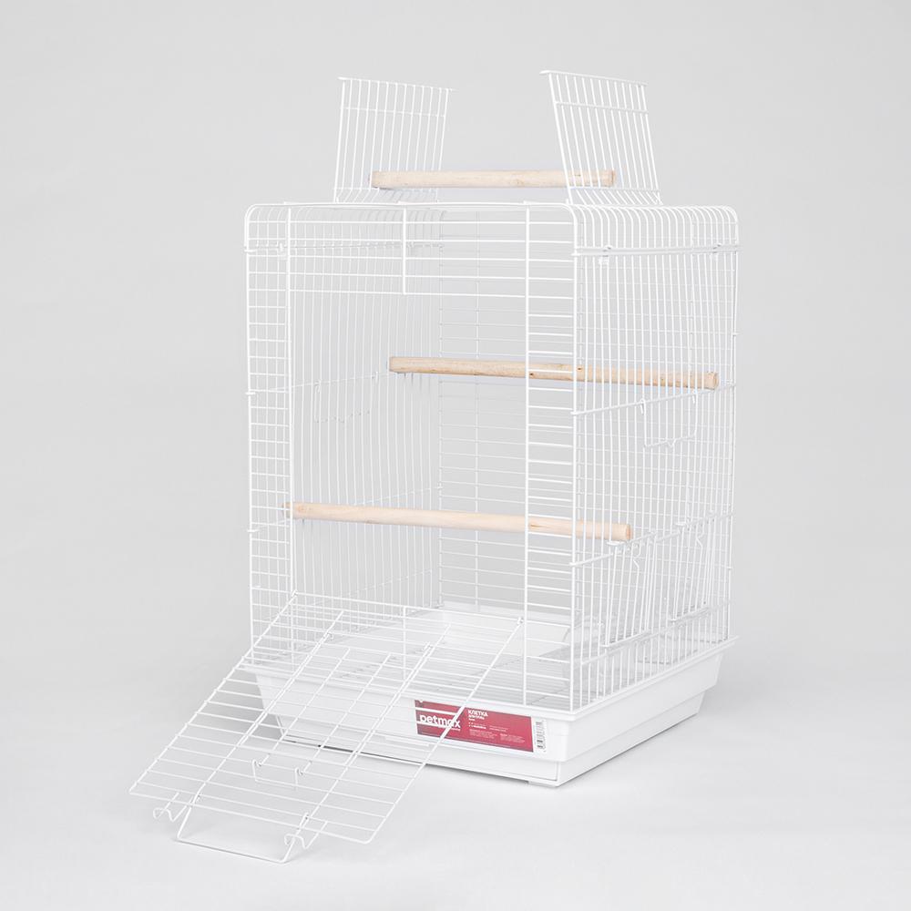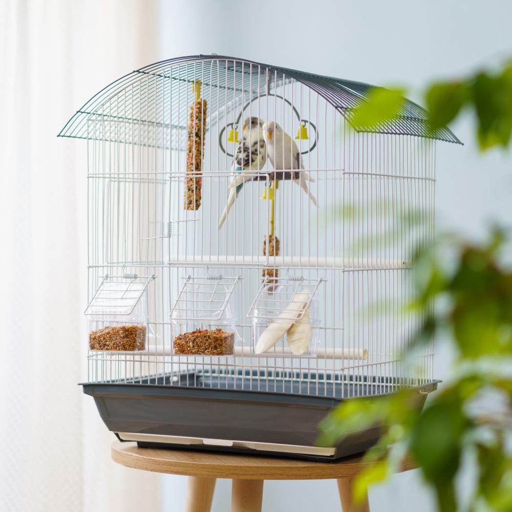 Клетки необычных форм интересные, но они годятся только для маленьких попугаев, например, для волнистых. Крупное пернатое будет чувствовать себя неуютно. А вот фигурные крыши им по нраву: можно тренироваться в ловкости и забираться в труднодоступные углы.
