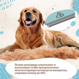 - Вычёсывайте собаку, проводя дешеддером по направлению роста волос, проникая лезвием вглубь шерсти животного.