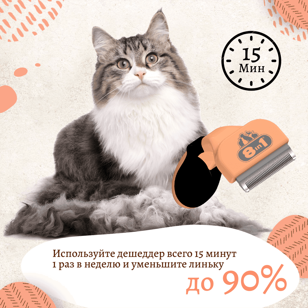 - Благодаря дешеддеру 8in1, вы забудете о выпавшей шерсти в доме, а ваш питомец будет выглядеть ухоженно.