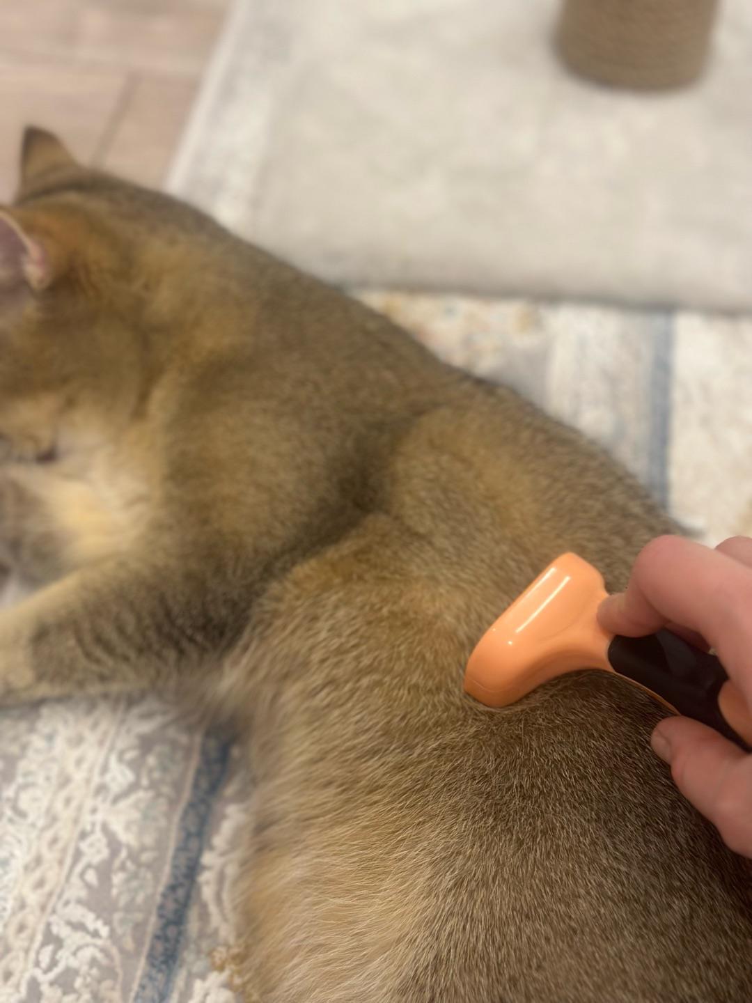 - Вычёсывайте кошку, проводя дешеддером по направлению роста волос, проникая лезвием вглубь шерсти животного.