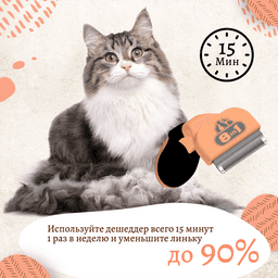 - Регулярное использование дешеддера предупреждает образование комков шерсти в желудке кошек.