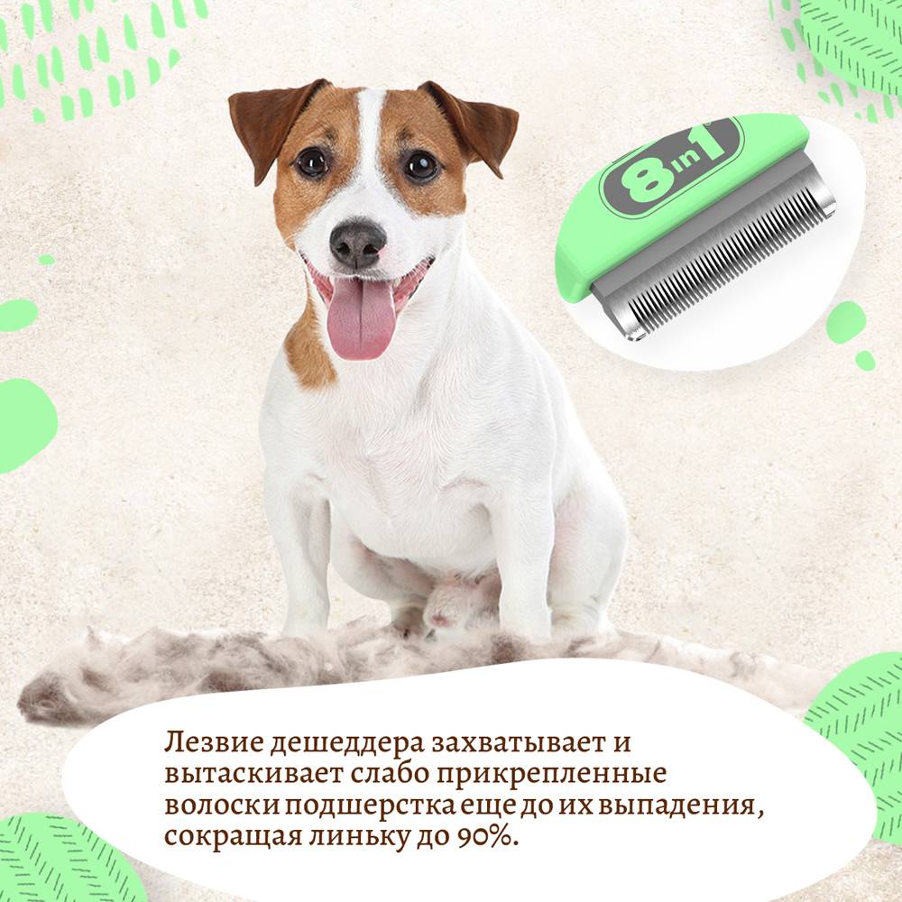 - Благодаря дешеддеру 8in1, вы забудете о выпавшей шерсти в доме, а ваш питомец будет выглядеть ухоженно.