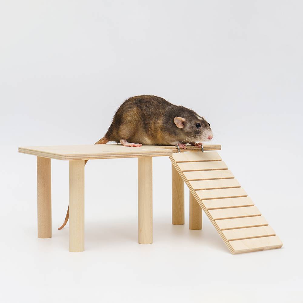 - Пологая лесенка позволяет грызуну легко забираться на полку.