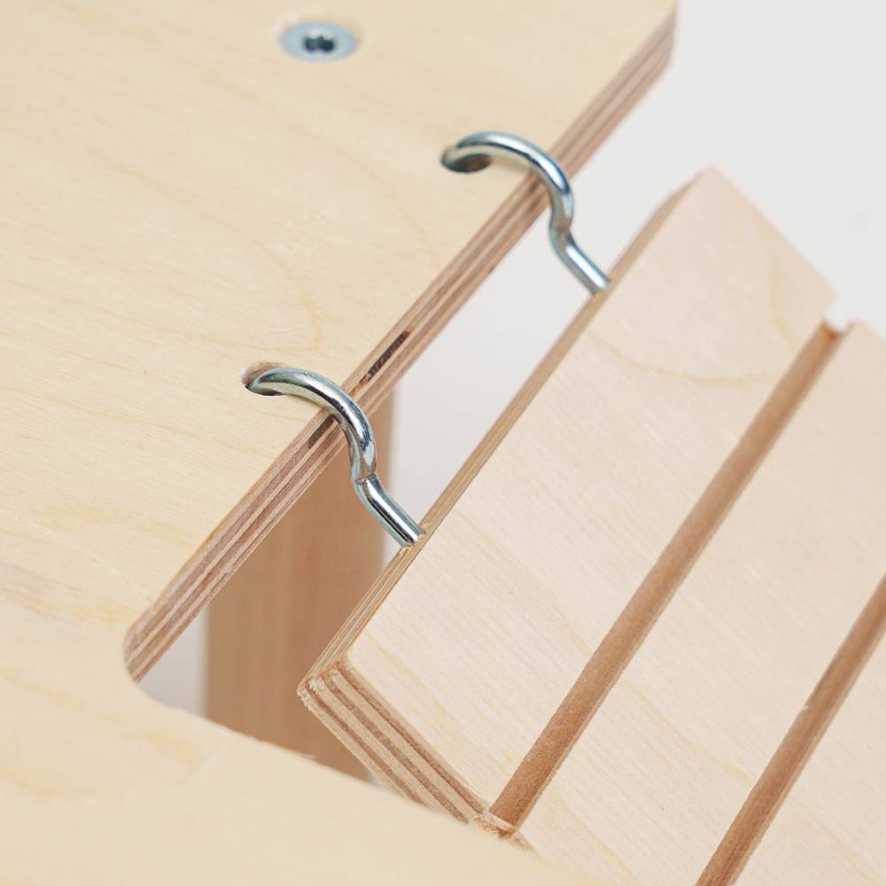 - Лесенка крепится с помощью металлических крючков.