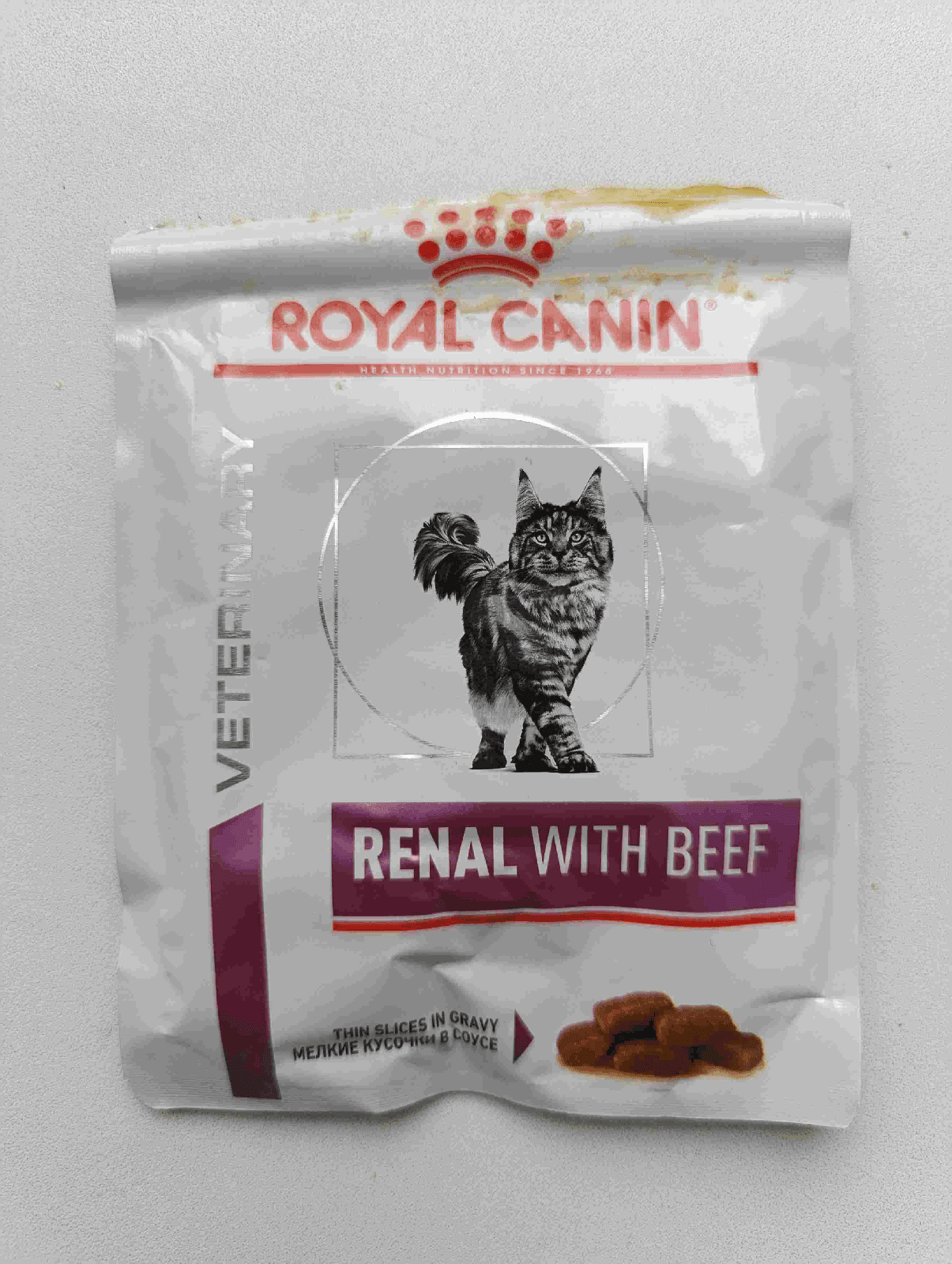 Влажный корм ROYAL CANIN® RENAL WITH BEEF (РЕНАЛ С ГОВЯДИНОЙ), мелкие кусочки в соусе - полнорационный диетический корм для взрослых кошек для поддержания функции почек при хронической болезни почек. Пониженное содержание фосфора и умеренное количество белка помогают поддерживать функции почек. Специально разработанный ароматический профиль помогает удовлетворить особые вкусовые предпочтения кошки.