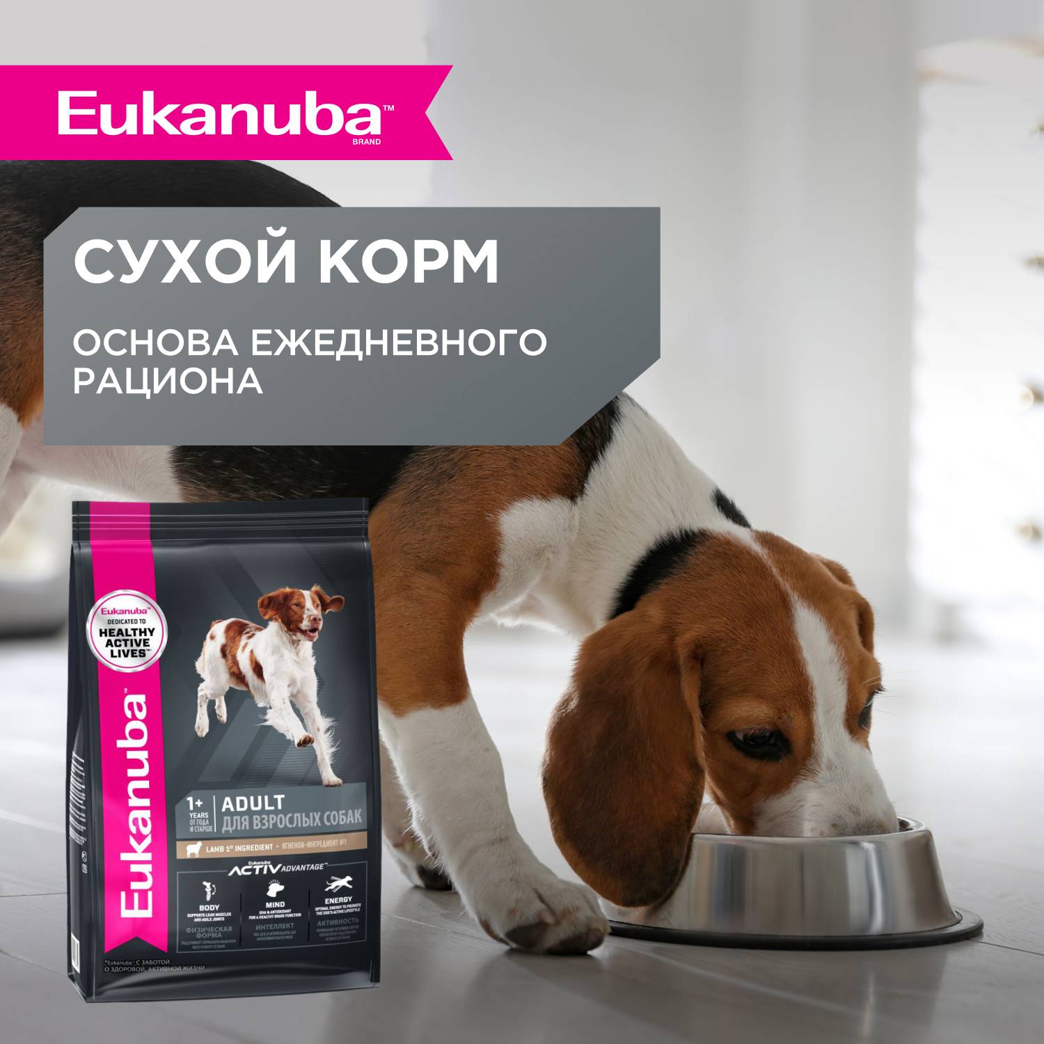 cочетание влажного и сухого рационов - залог здоровья собаки. Влажные рационы способствуют профилактике мочекаменной болезни, поддерживают оптимальный водный баланс, снижают риск ожирения, а так же помогают обеспечить разнообразие питания собак. Включайте влажные рационы Eukanuba® в ежедневное питание вашего питомца!