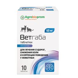 AGROBIOPROM Ветгаба для лечения судорог, снижения боли и коррекции поведения у кошек и собак 60мг, 10 таблеток