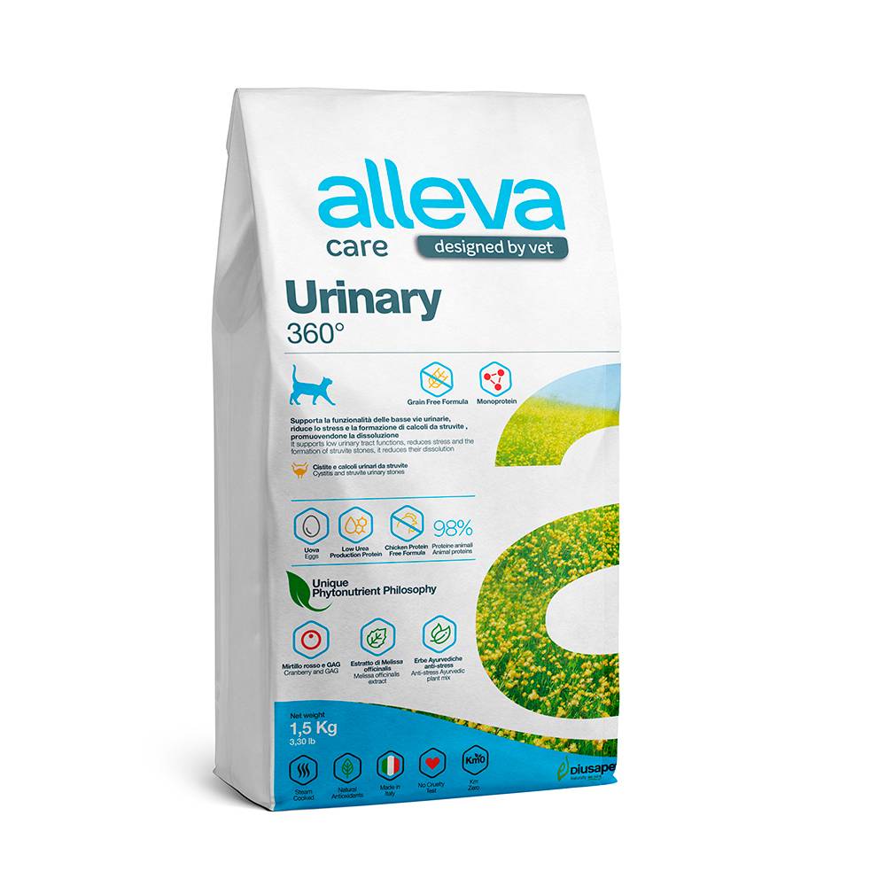 Alleva Care Urinary 360° — это полнорационный сухой диетический корм для взрослых кошек, предназначенный для растворения струвитных камней и предотвращения их рецидивов. Он также показан для поддержания здоровья мочевыводящих путей в случаях заболевания нижних отделов мочевыводящих путей кошек и кошачьего урологического синдрома.