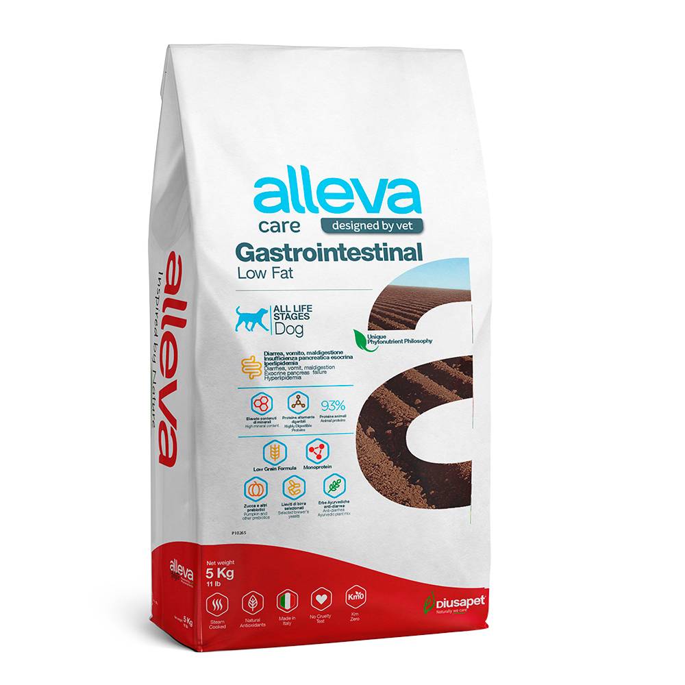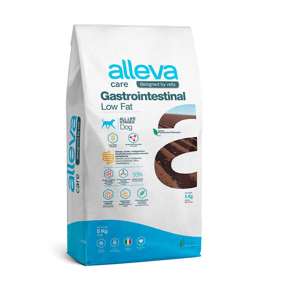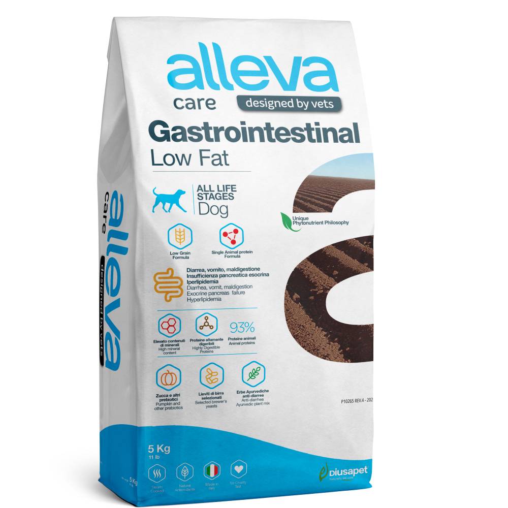 Alleva Care Гастроинтестинал с низким содержанием жира. Полнорационный сухой диетический корм для собак всех возрастов, разработанный для животных с расстройствами переваривания и всасывания в кишечнике и для компенсации плохого пищеварения и экзокринной недостаточности поджелудочной железы. Корм также показан для поддержки липидного обмена в случае гиперлипидемии.
