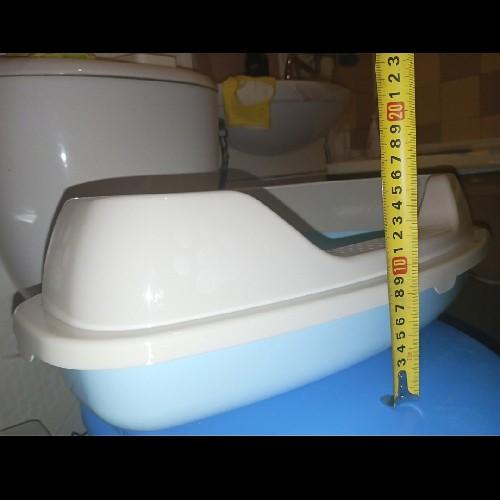 Достоинства: Большой лоток с высокими бортами, наполнитель не рассыпается
