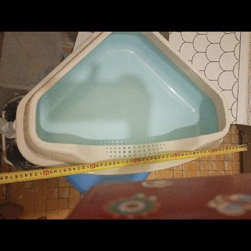 Удобный угловой туалет. кошка сразу нашла где он и с радостью ходит