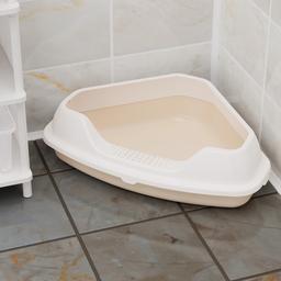 Альтернатива Туалет угловой с высоким бортиком для кошек, 55x41x15 см, бежевый