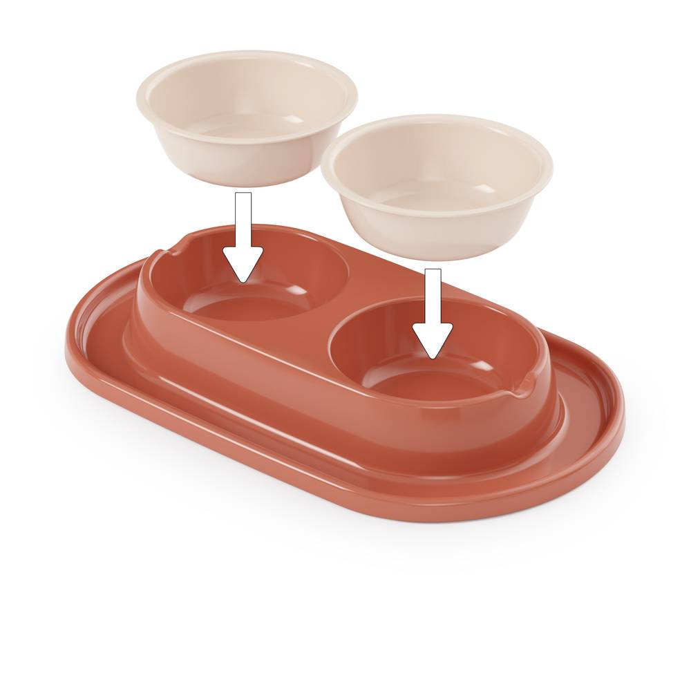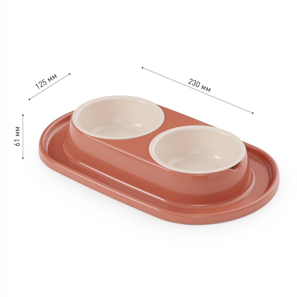 Альтернатива Миска двойная на подставке для кошек и собак Эффи, терракотовый, 300 мл