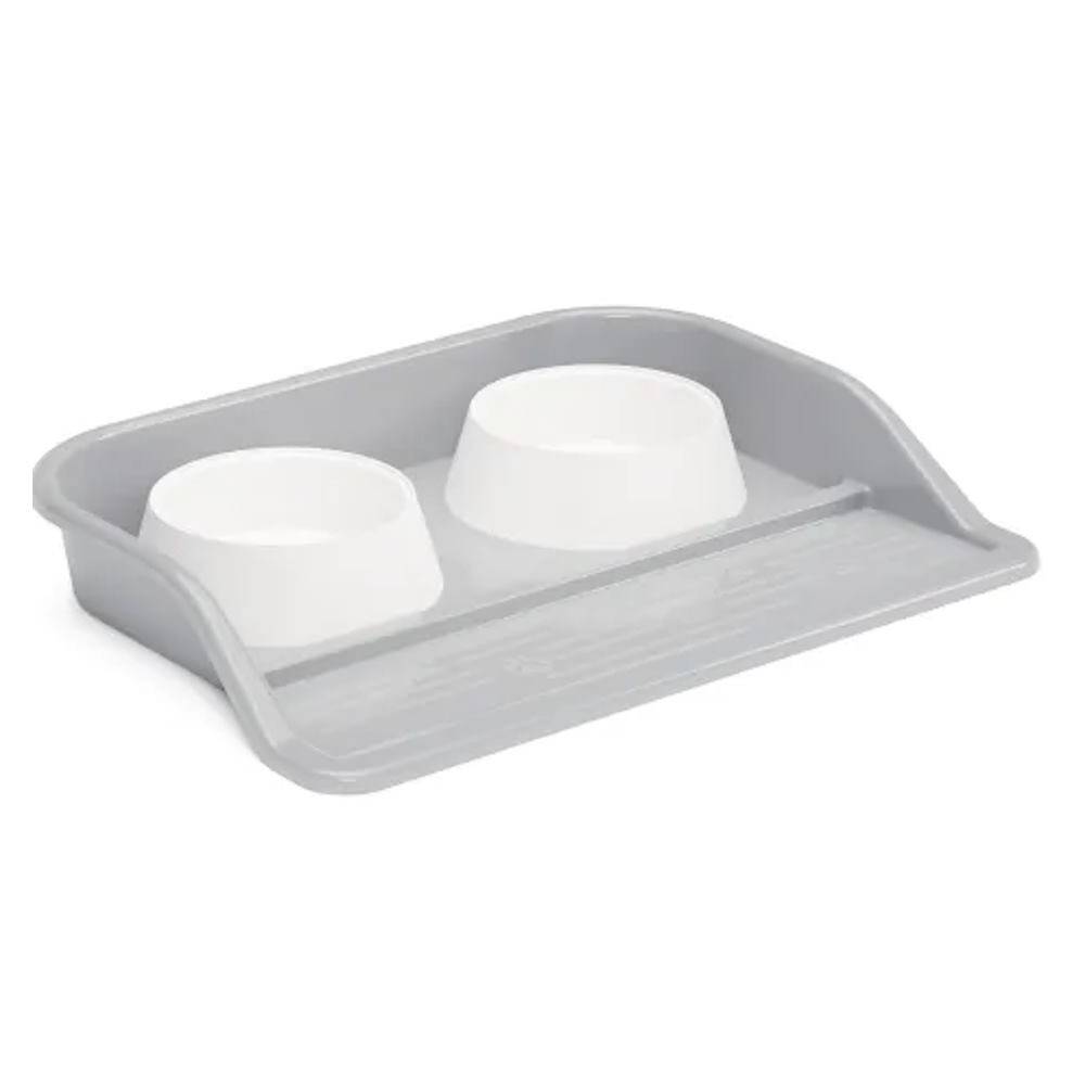 Прекрасный набор. Миски сьемные, лоток большой. Просто помыть, если прольется, не разливается по полу.
