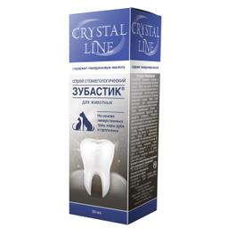 Crystal Line Зубастик спрей стоматологический применяют собакам и кошкам для гигиенической обработки десен и зубов, улучшения состояния слизистой оболочки ротовой полости, нормализации кислотно-щелочного баланса ротовой полости и устранения неприятного запаха. Также гель и спрей используют для предотвращения налета и образования зубного камня.