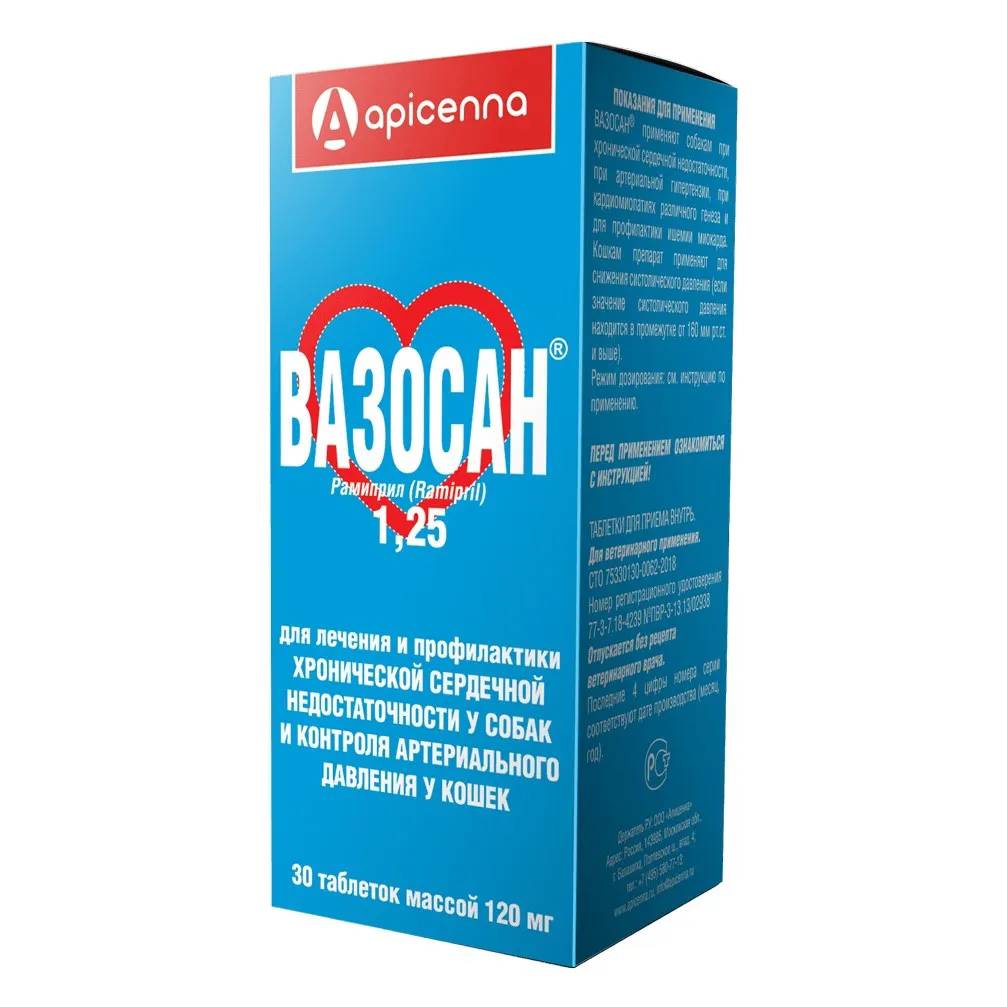Вазосан 2.5 — препарат для лечения и профилактики хронической сердечной недостаточности у собак и контроля артериального давления у кошек.