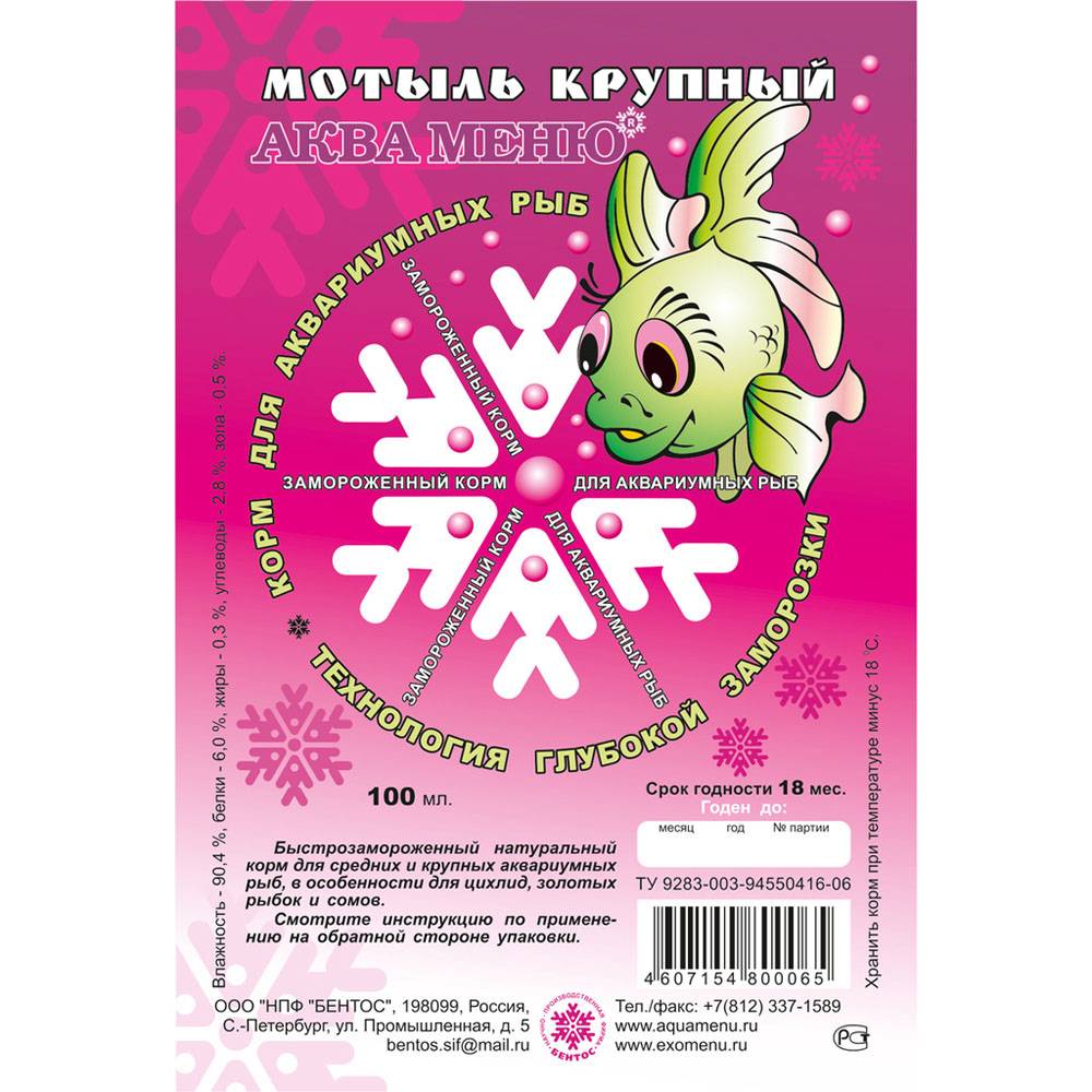 МОТЫЛЬ КРУПНЫЙ – натуральный корм, подходит для кормления цихлид, золотых рыбок и сомов.