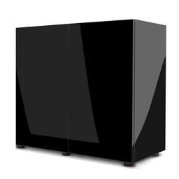 - В качестве основы используется шкаф на ножках и с двумя дверцами из темного стекла.