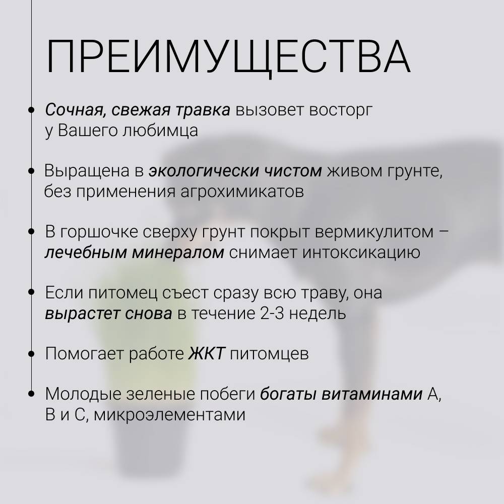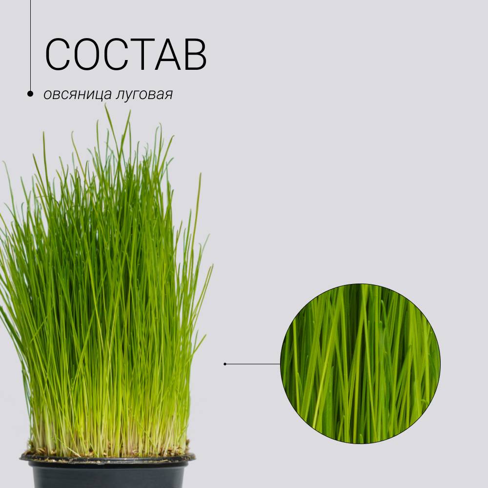 Покупаем разную травку, но овсянница оказалась самой удобной. У меня один кот постоянно роняет крупную траву, не может жевать, а Овсянница вообще чудесно подошла!Мадлон -.