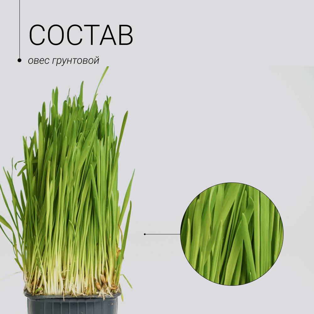 - Семяна овса, пророщенные в вермикулите с добавлением экстракта гумуса. Вермикулит – лечебный минерал, стерильный природный сорбент, снимает интоксикацию, выводит соли тяжелых металлов, восполняет недостаток Ca, Mg, Fe; используется в качестве минеральной добавки к кормам.