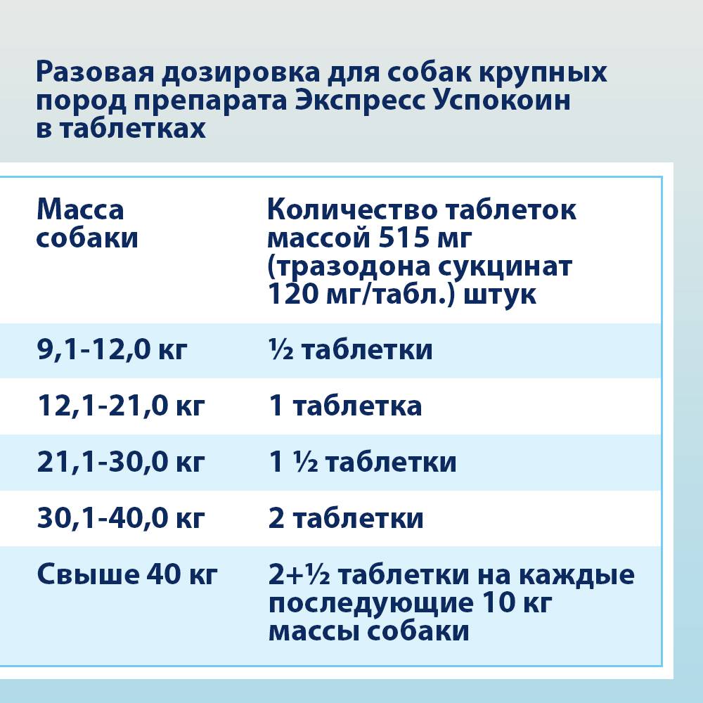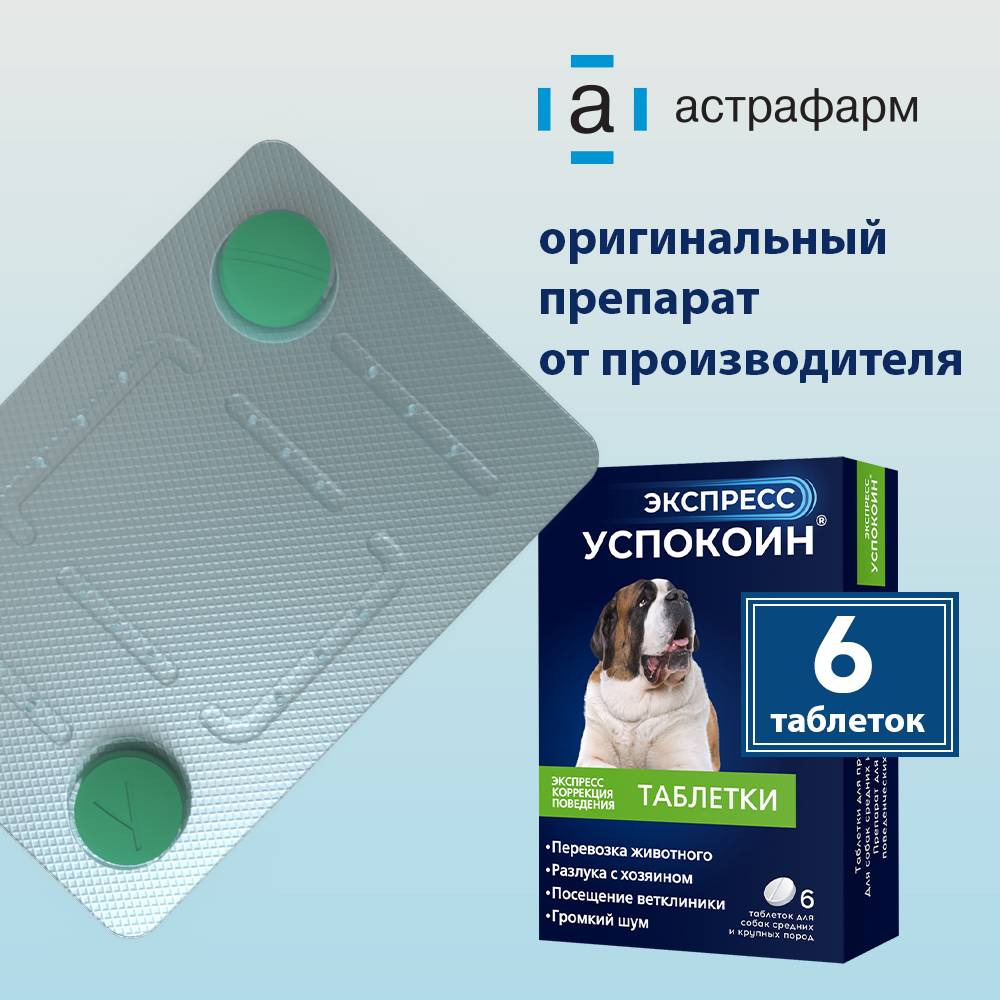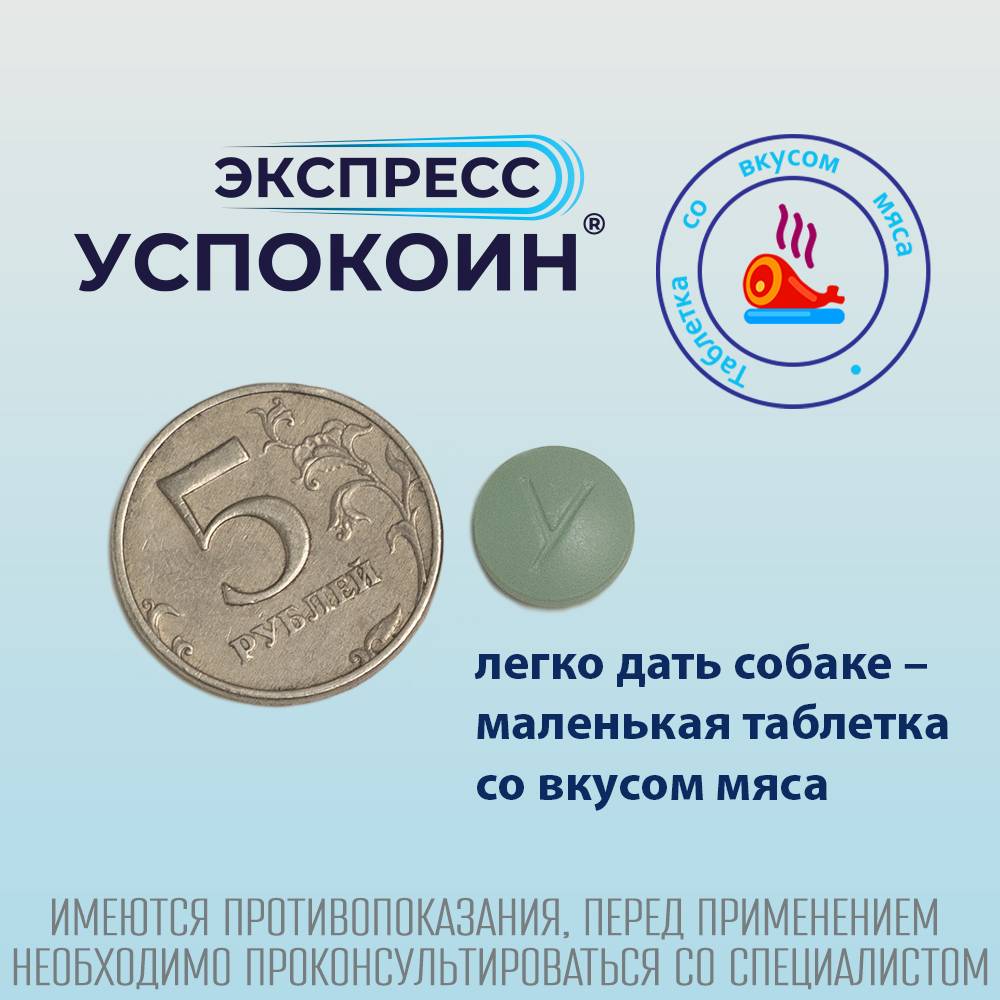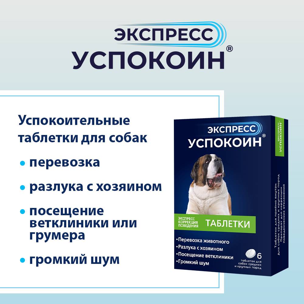 Экспресс Успокоин таблетки – это успокоительный препарат, который помогает решить поведенческие проблемы у собак в стрессовых ситуациях.