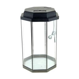 Аквариум «Восьмигранник 32». Узкий, высокий, компактный. Отличный обзор со всех сторон. Аквариум из стекла 4 мм вклеен в пластиковый поддон. В крышку встроен патрон Е14.