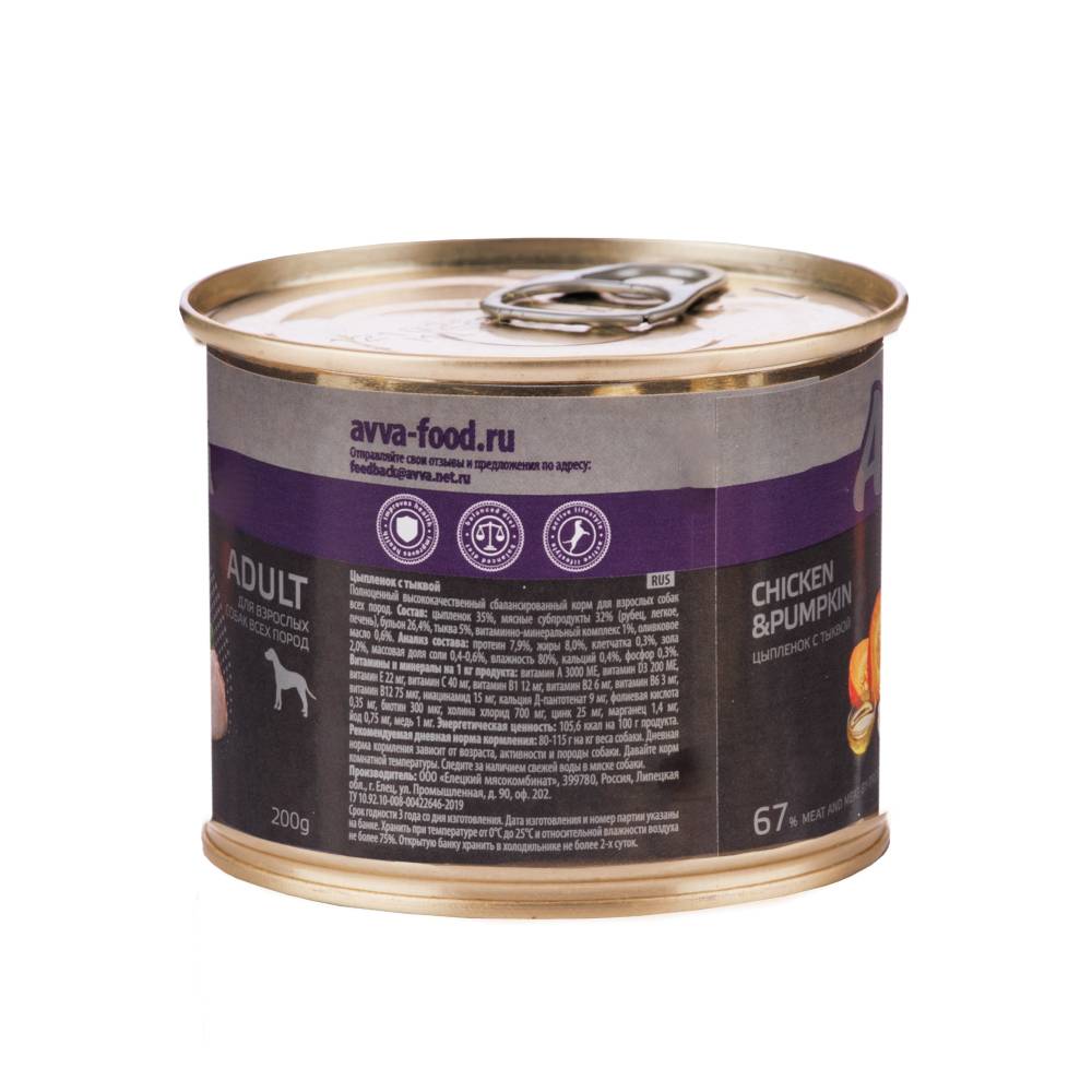 Корм для собак Авва цыпленок с тыквой является полнорационным питанием для вашего питомца на каждый день.