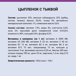 - В составе консервированного корма, помимо высококачественного диетического белка, получаемого из мяса домашней птицы, включена клетчатка, которая необходима для правильного функционирования ЖКТ.