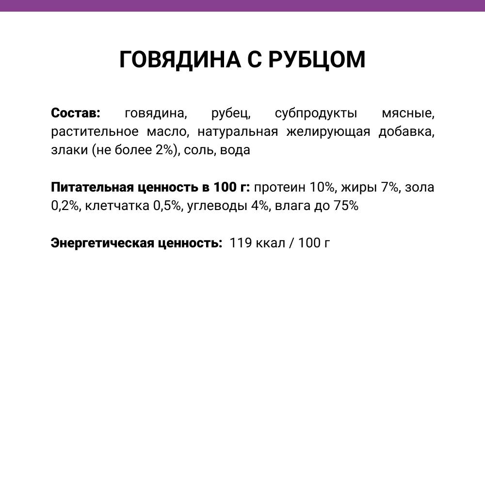 Консервированный мясной рацион АВВА с говядиной и рубцом предназначен для взрослых собак любой породы.