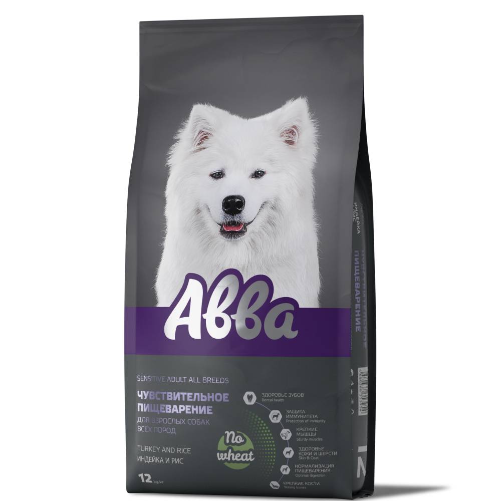 Полноценный рацион на каждый день для взрослых собак от бренда АВВА предназначен для питомцев с чувствительным пищеварением и склонных к аллергии.