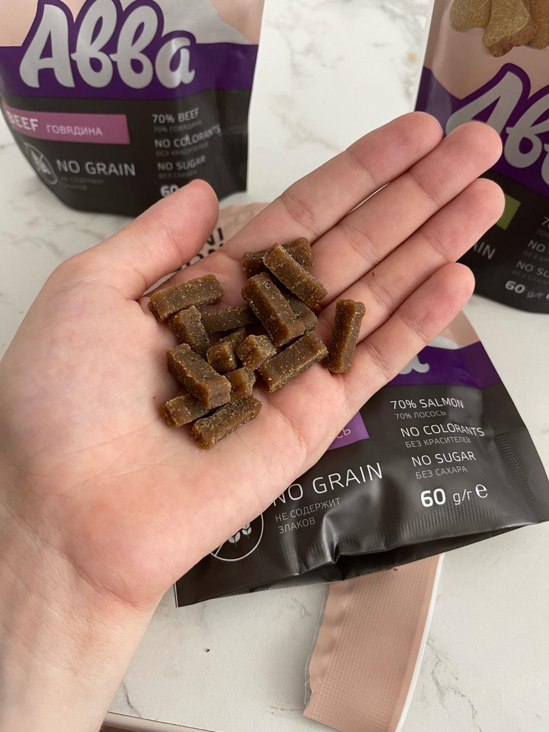 - Лакомство АВВА не содержит в составе зерновых культур, поэтому подойдет для собак с чувствительным пищеварением и аллергией на глютен.