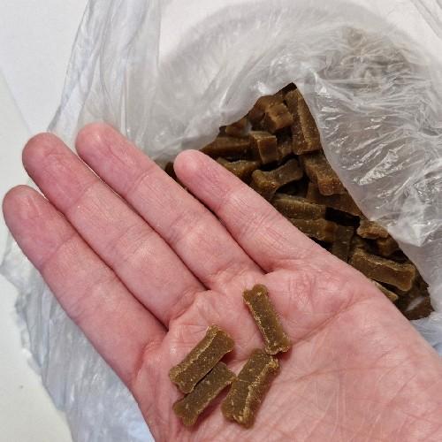 - Форма и размер лакомства позволяет его брать с собой на прогулку или в дорогу, используя в качестве поощрения при дрессировке или в качестве дополнительного источника питательных веществ.