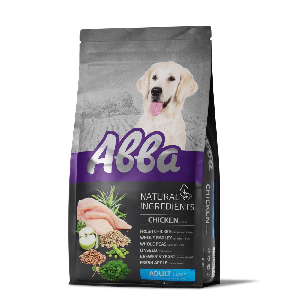 ABBA Natural Ingredients Adult Large – это полнорационный корм со свежим мясом курицы и с высоким содержанием натуральных ингредиентов, разработанный специально для взрослых собак крупных пород. Гранулы корма имеют крупный размер, чтобы собаки не проглатывали корм, а тщательно его разжёвывали. Таким образом, происходит естественная стимуляция челюстных мышц и оказывается целостная поддержка здоровья полости рта.