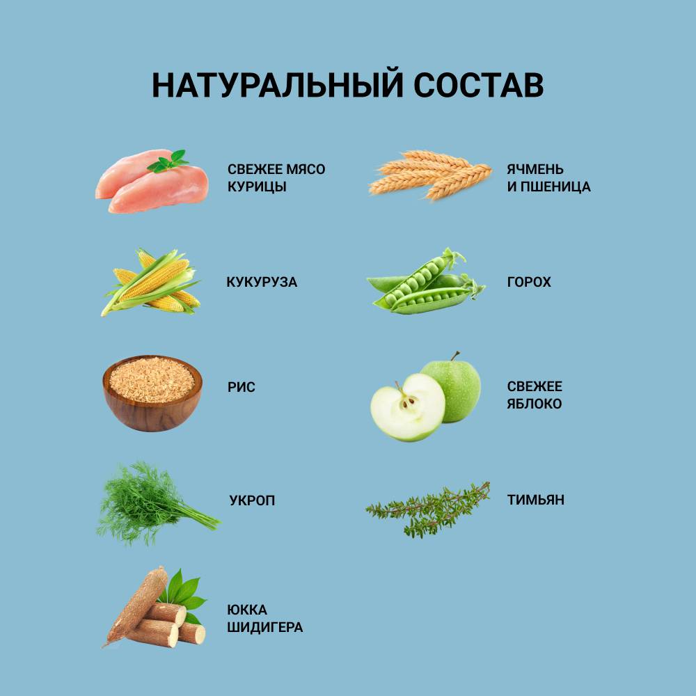 - Цельный ячмень не вызывает аллергии и имеет низкий гликемический индекс, тем самым насыщая собаку на более продолжительное время без потребления лишних калорий.