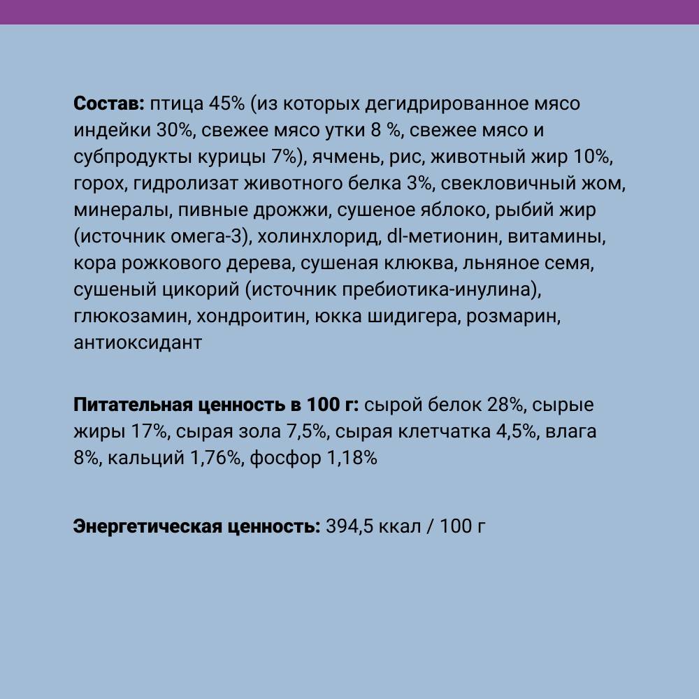 - Корм содержит высокий уровень белка и способствует формированию крепкой мускулатуры.