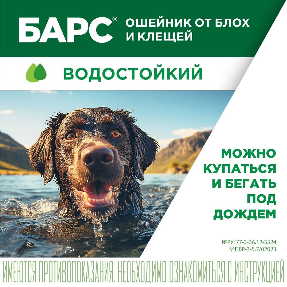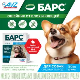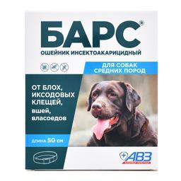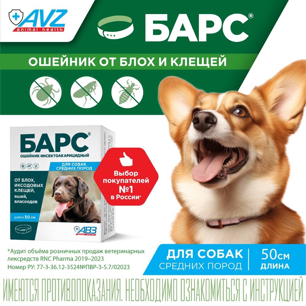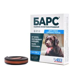 Защита от блох и клещей до 4 месяцев. АВЗ Ошейник Барс для собак средних пород 50 см от блох противостоит кровососущим насекомым на протяжении пяти месяцев. Производится из качественного материла, который пройдет длительный срок службы. Содержит эффективные компоненты, которые отпугивают вредителей. Удобен и практичен в применении. Быстро фиксируется на шее и не вызывает дискомфорта. Длина регулируется за счет люверсов.