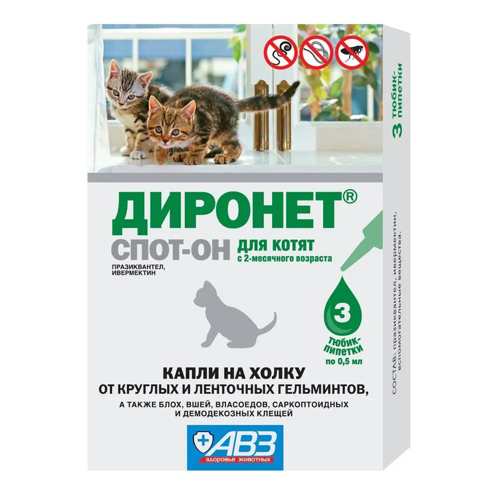 Противопоказанием к применению препарата ДИРОНЕТ® спот-он является повышенная индивидуальная чувствительность животного к компонентам препарата. Запрещается применять котятам моложе 2-месячного возраста, беременным и лактирующим самкам, больным инфекционными болезнями, ослабленным и выздоравливающим животным.