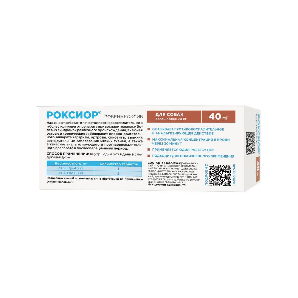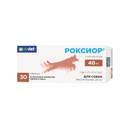 АВЗ Роксиор Нестероидный противовоспалительный и болеутоляющий препарат для собак от 20 кг, со вкусом и ароматом свежего мяса, 40 мг, 30 таблеток