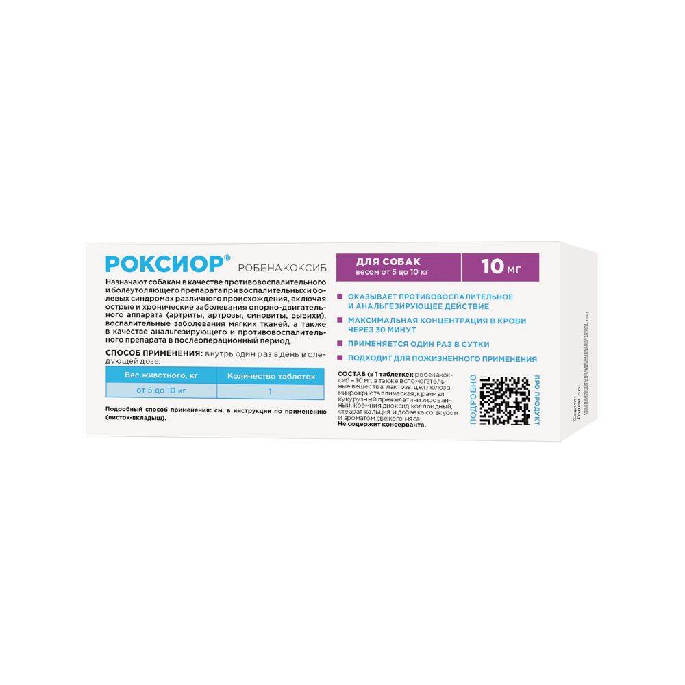 РОКСИОР® применяют собакам в качестве противовоспалительного и болеутоляющего препарата при воспалительных и болевых синдромах различного происхождения, включая острые и хронические заболевания опорно-двигательного аппарата (артриты, артрозы, синовиты, вывихи), воспалительные заболевания мягких тканей, а также в качестве анальгезирующего и противовоспалительного препарата в послеоперационный период.