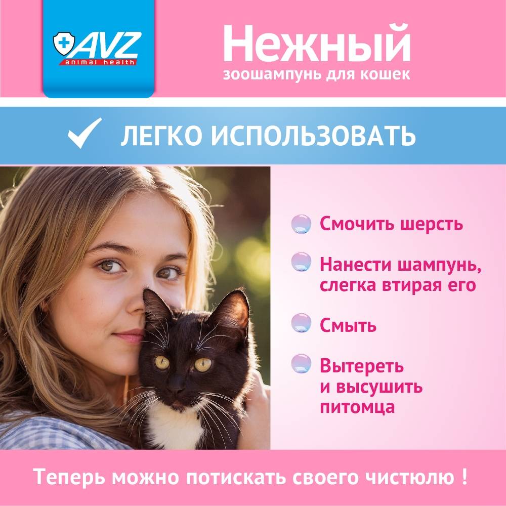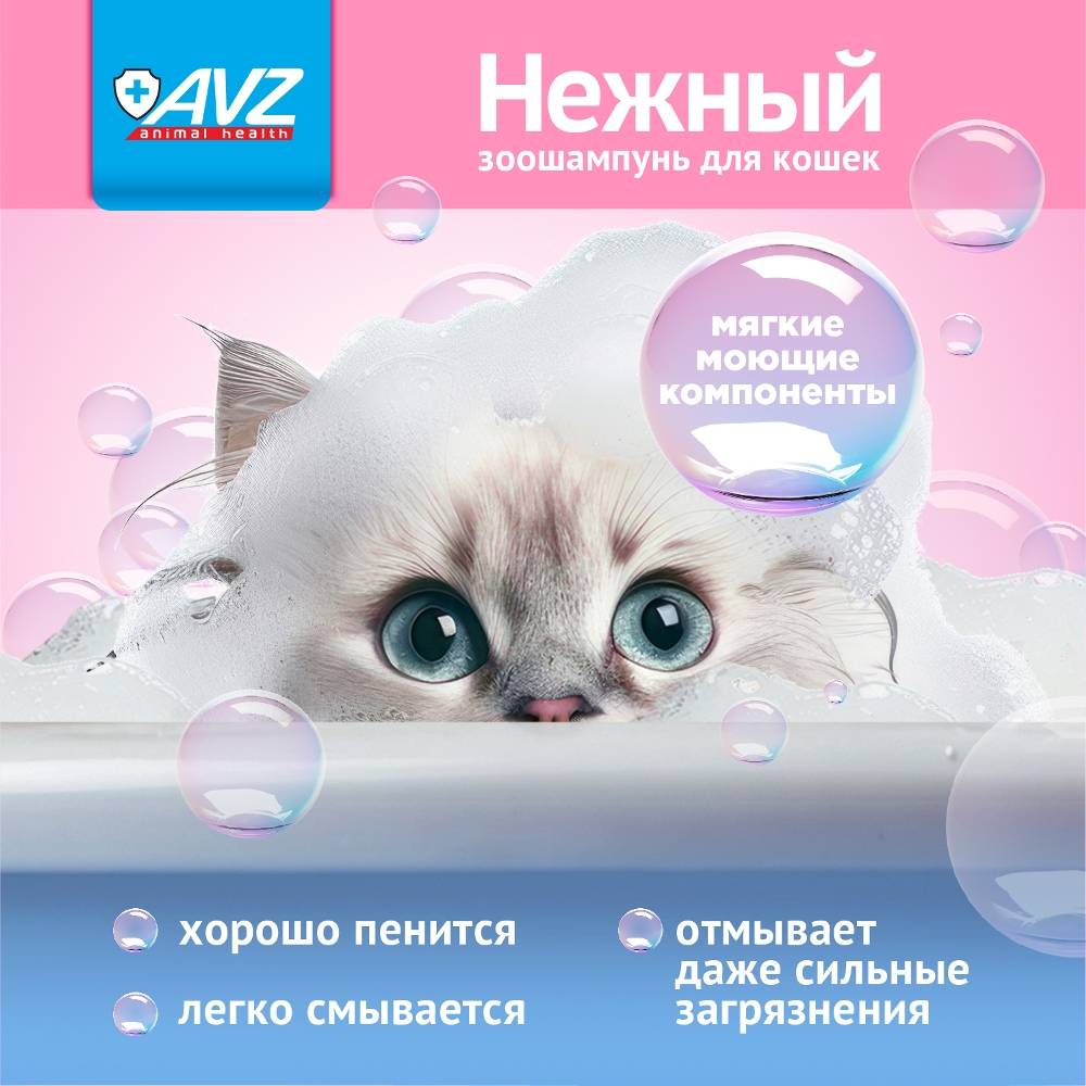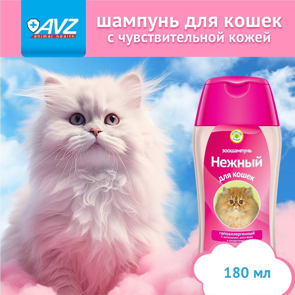 Зоошампунь «Нежный» применяют для регулярного ухода за кожно-волосяным покровом кошек с чувствительной кожей всех возрастов и пород.
