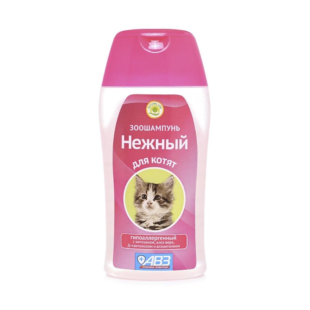 Зоошампунь «Нежный» применяют для регулярного ухода за кожно-волосяным покровом котят с чувствительной кожей всех возрастов и пород.