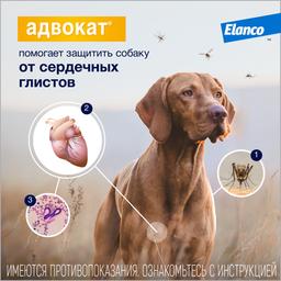 Адвокат® прост в применении – капли наносятся на холку в дозировке согласно весу собаки. Производится в Германии.
