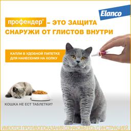 Профендер®, капли на холку от гельминтов для кошек - новый взгляд на обработку кошек от глистов: помогает комфортно и без лишнего стресса избавлять вашего питомца от внутренних паразитов путем нанесения препарата на кожу в области основания шеи. Профендер® имеет удобную дозировку по весу животного. Препарат от компании Elanco, производится в Германии.