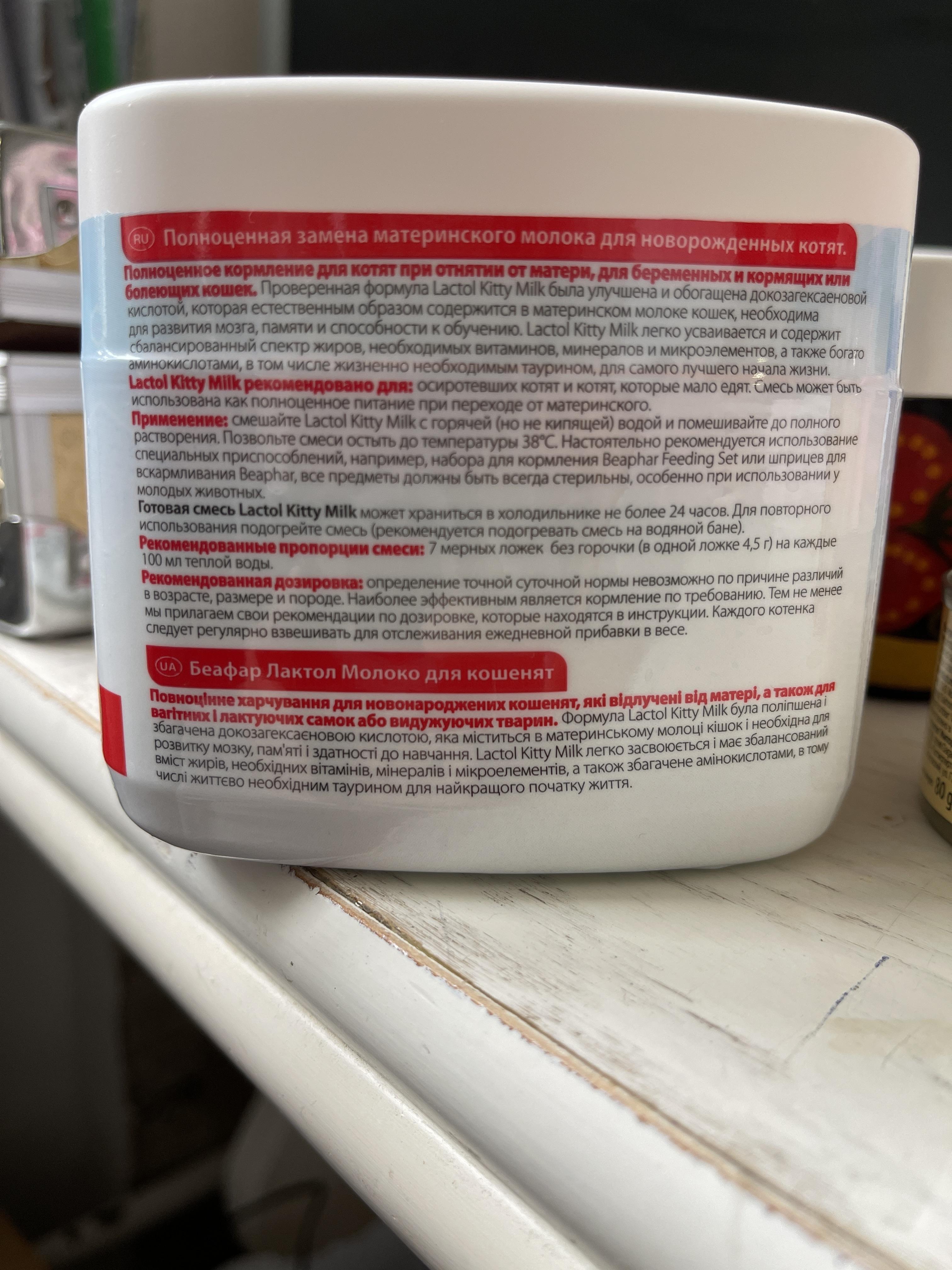 Полноценное кормление для котят при отнятии от матери, для беременных и кормящих или болеющих кошек. Проверенная формула Lactol Kitty Milk была улучшена и обогащена докозагексаеновой кислотой, которая естественным образом содержится в материнском молоке кошек, необходима для развития мозга, памяти и способности к обучению. Lactol Kitty Milk легко усваивается и содержит сбалансированный спектр жиров, необходимых витаминов, минералов и микроэлементов, а также богато аминокислотами, в том числе жизненно необходимым таурином, для самого лучшего начала жизни. Lactol Kitty Milk рекомендовано для: oсиротевших котят и котят, которые мало едят. Смесь может быть использована как полноценное питание при переходе от материнского.